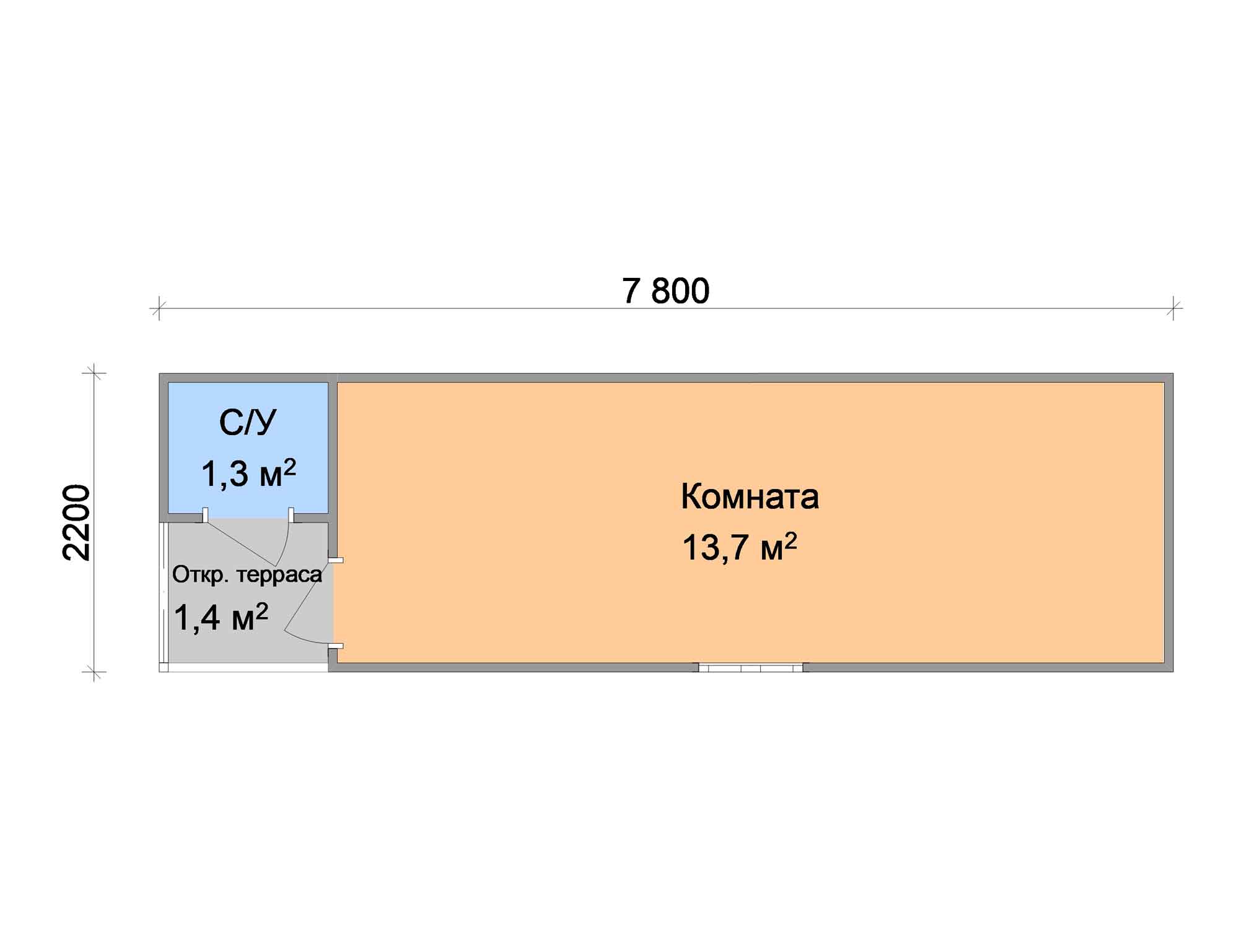 ![]() | Дачная бытовка Крокус - 1 | 7.8x2.2 | 17.16 | ![]() | ДВП-Оргалит: 149 500 | Вагонка дерев.: 155 500 | OSB: 153 500 |
